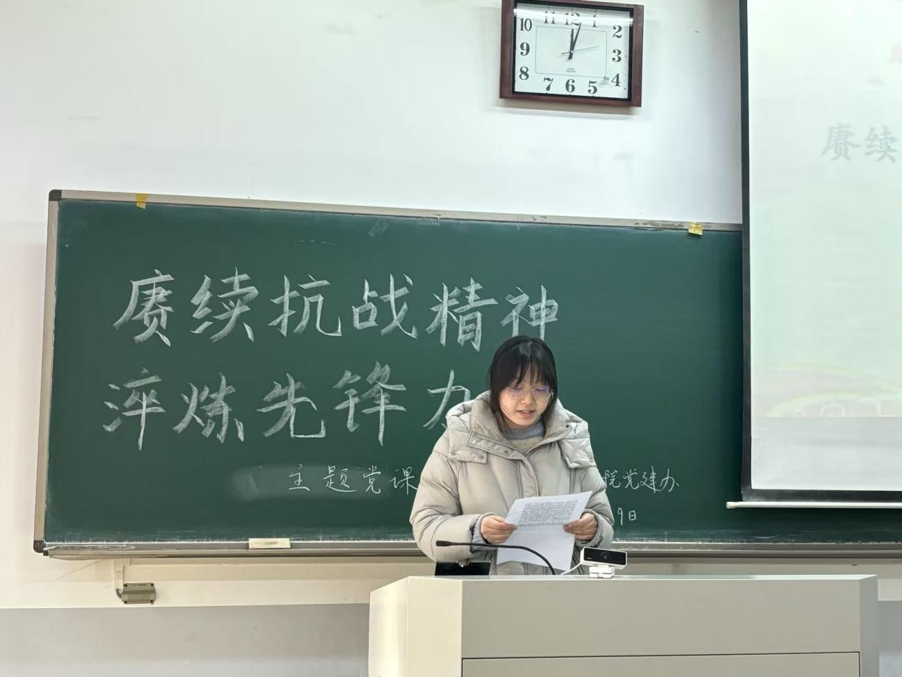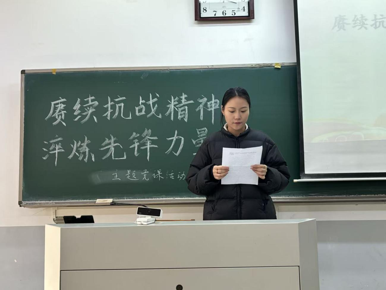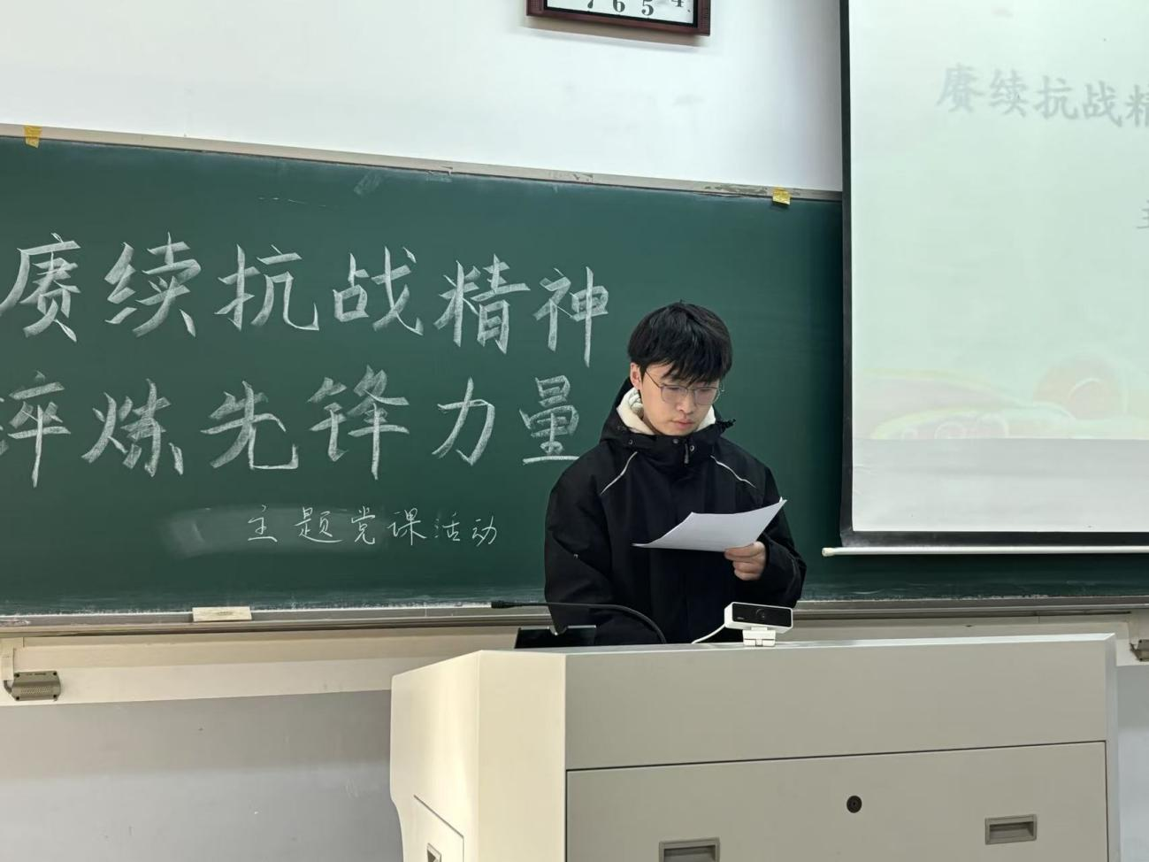 学生党支部于12月9日中午在龙子湖校区繁塔楼E107开展了以“赓续抗战精神,淬炼先锋力量”为主题的党课活动。