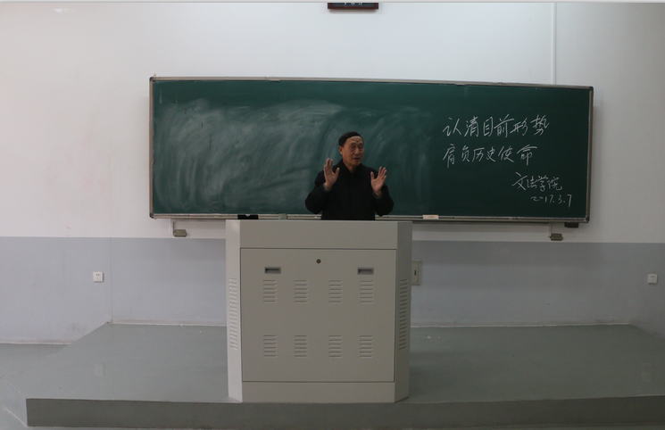 报告会由杨明亮教授讲授,报告会伊始,杨明亮教授多角度地讲述了如今世界的局势以及经济全球化问题,为此次“认清目前形势,肩负历史使命”报告会的背景做了说明,强调了此次活动的目的和意义,指出当代大学生要认清局势,扛起使命,自觉把个人理想与时代任务紧密联合起来;同时,杨教授申明了思想是行动的先导,认识到位才会行动自觉,大学时期是青少年形成科学的世界观、人生观、价值观的重要时期,认真学习拓宽视野是养成正确三观的一条重要途径;最后,杨教授强调新时代的大学生要养成过硬的“本领”,能胜任自己的工作,才能为国家做出贡献,而大学四年大学时光是最好的机会,希望大家珍惜。