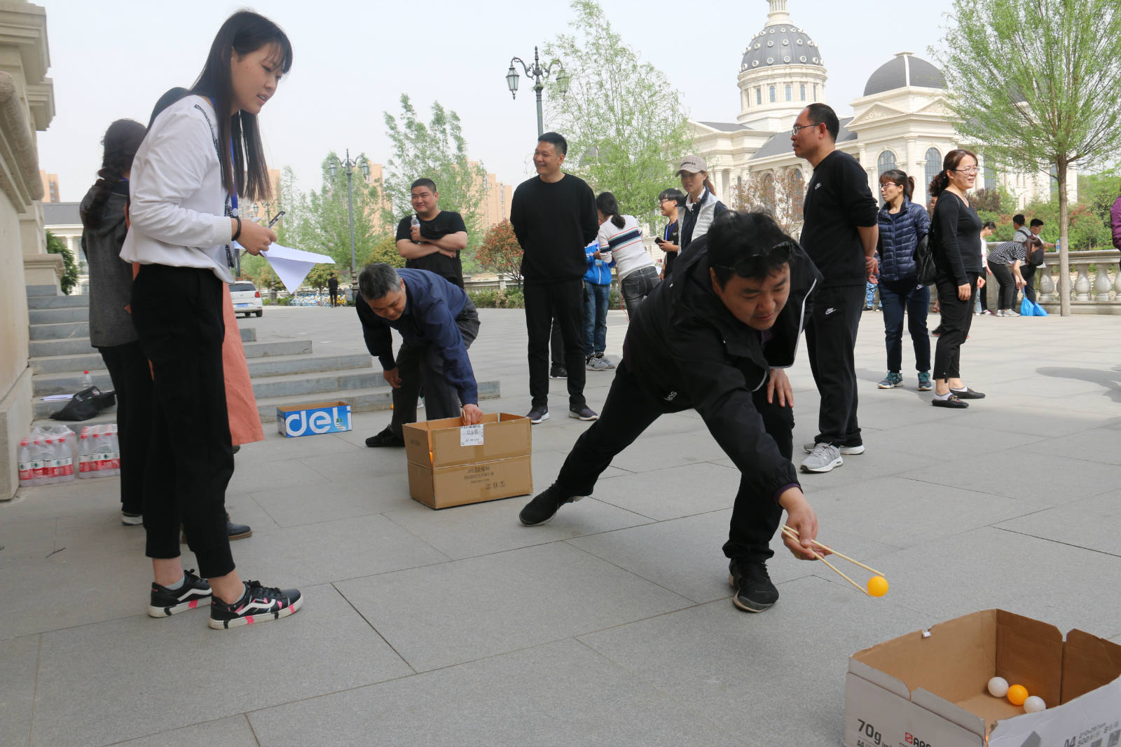 于今天上午(4月11日)在繁塔楼E座北举行了教师趣味运动会,此次活动响应了我校校运动会能吃苦、敢拼博的运动精神。 此次趣味运动会共有四个项目:一、套圈 二、30秒跳绳 三、乒乓球搬家 四、飞镖。