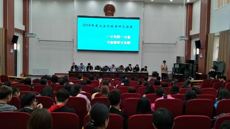 活动伊始,14级优秀学生代表就考研备考方面向学弟学妹们分享了各自的方法与经验,以及在考研过程中遇到的部分问题及解决措施,增强大家的考研信心。随后,四位教师代表从大学生考研、就业形势及学生的实际出发,进行了考研形势分析。他们要求大家明确考研目的,理清就业和考研的关系,合理定位找到学习动力,并鼓励同学们要抓住机会、把握目标,做一个有梦想的人。最后,本次交流会在师生互动中圆满落幕。