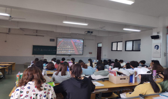 组织学生代表在e408观看习近平总书记纪念五四百年发言,团委副书记赵蕊和团委辅导员顾亚菲参加了本次活动。