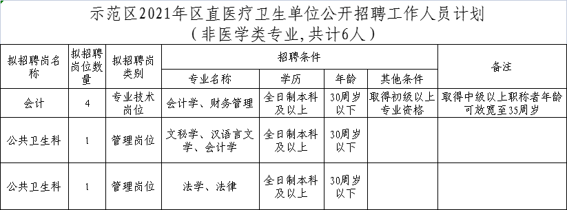 点击下载:1、示范区2021年区直医疗卫生单位公开招聘工作人员计划